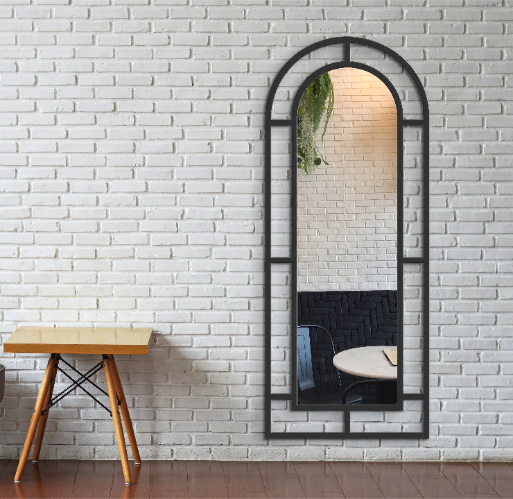 Arch Window Full Length Mirror 70×180 cm – Black Metal Frame | Architectural Wall Mirror
